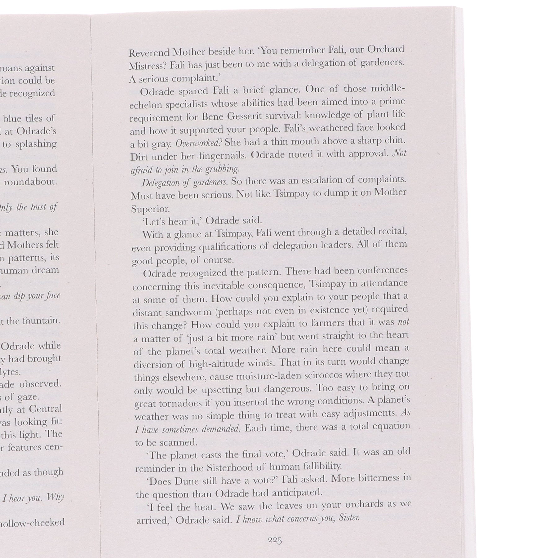 But for the children of Dune, the very blossoming of their land contains the seeds of its own destruction. The altered climate is destroying the giant sandworms, and this in turn is disastrous for the planet's economy.